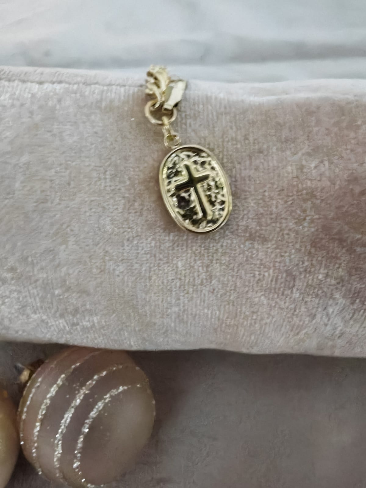 Das Armband "Levi" beeindruckt durch die angesagte Layering-Optik mit zwei verschiedenen Kettenarten und dem Anhänger mit einem Kreuz bedruckt.
