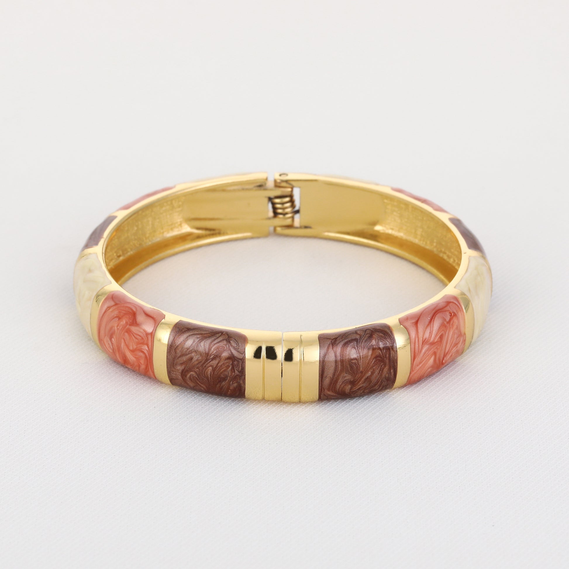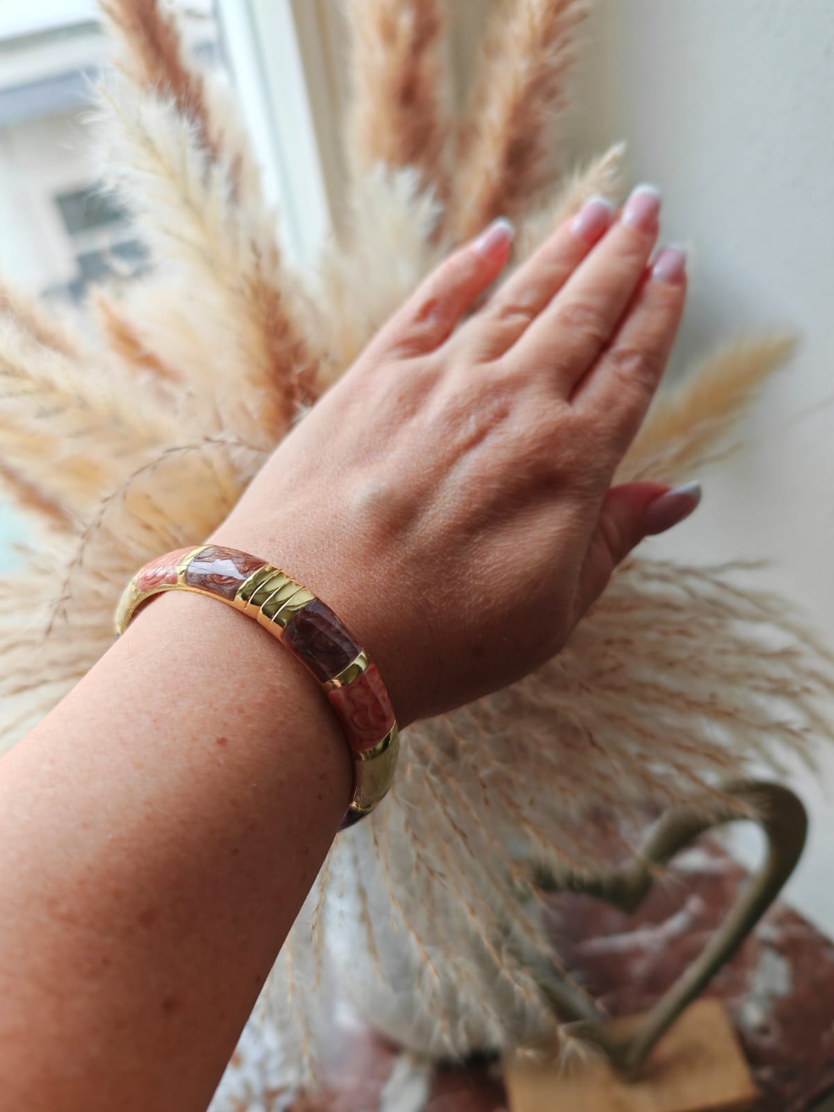 Der Armreif "Cleo" besticht durch seine eleganten warmen Herbsttöne, die perfekt zu saisonalen Outfits passen. Das goldene Finish verleiht dem Schmuckstück eine edle Ausstrahlung, die sowohl alltagstauglich als auch für besondere Anlässe geeignet ist. Dieses Accessoire setzt dezente, stilvolle Akzente.