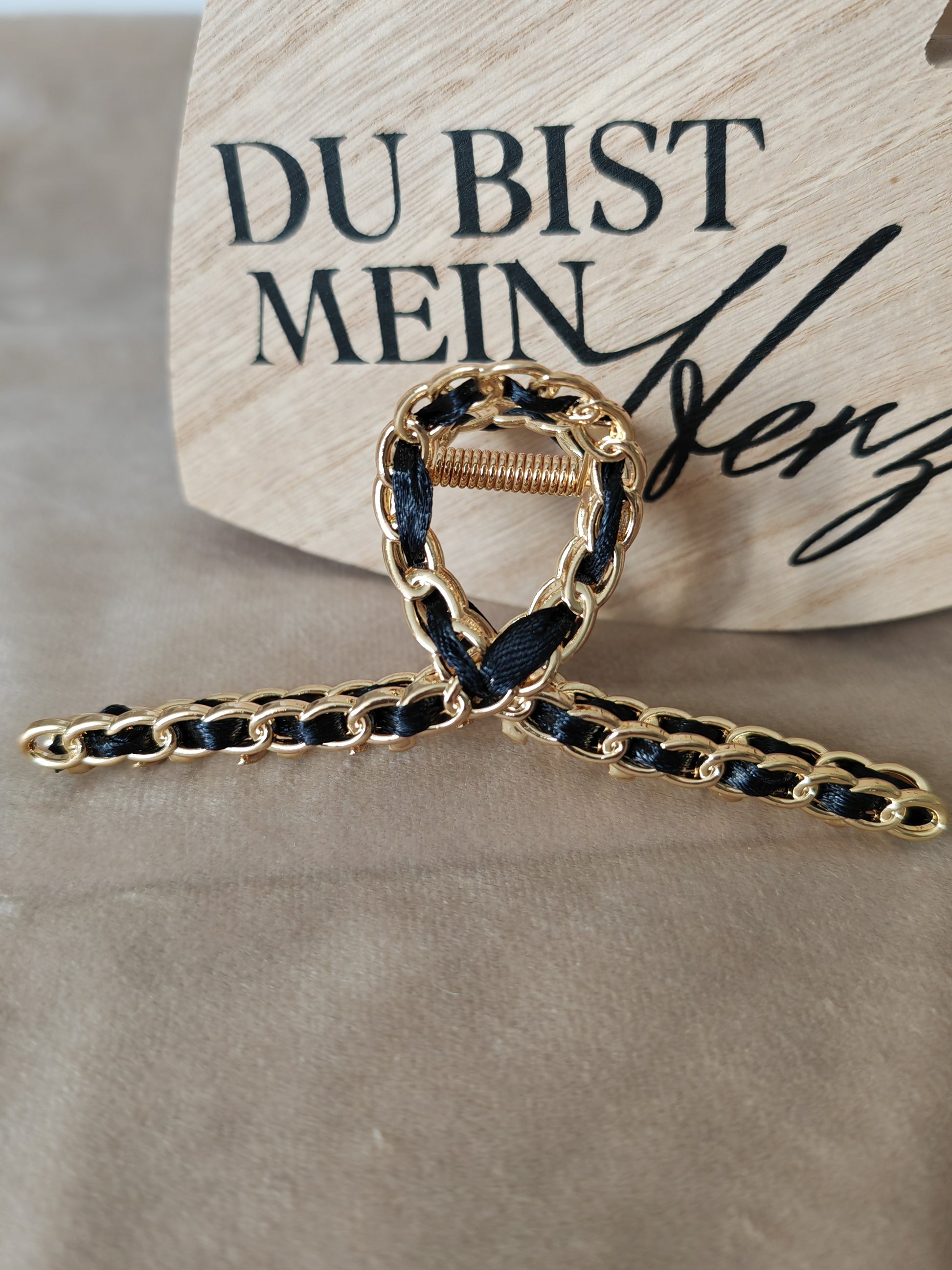 Die Haarspange Tizra ist die perfekte Wahl, um Ihrem Haar einen Hauch von Eleganz zu verleihen. Hergestellt aus hochwertigem stabilen Metal in Gold und Schwarz, bietet sie einen stilvollen Akzent für jede Frisur. Mit dieser Haarspange können Sie Ihre Haare sicher und stilvoll zurückhalten.