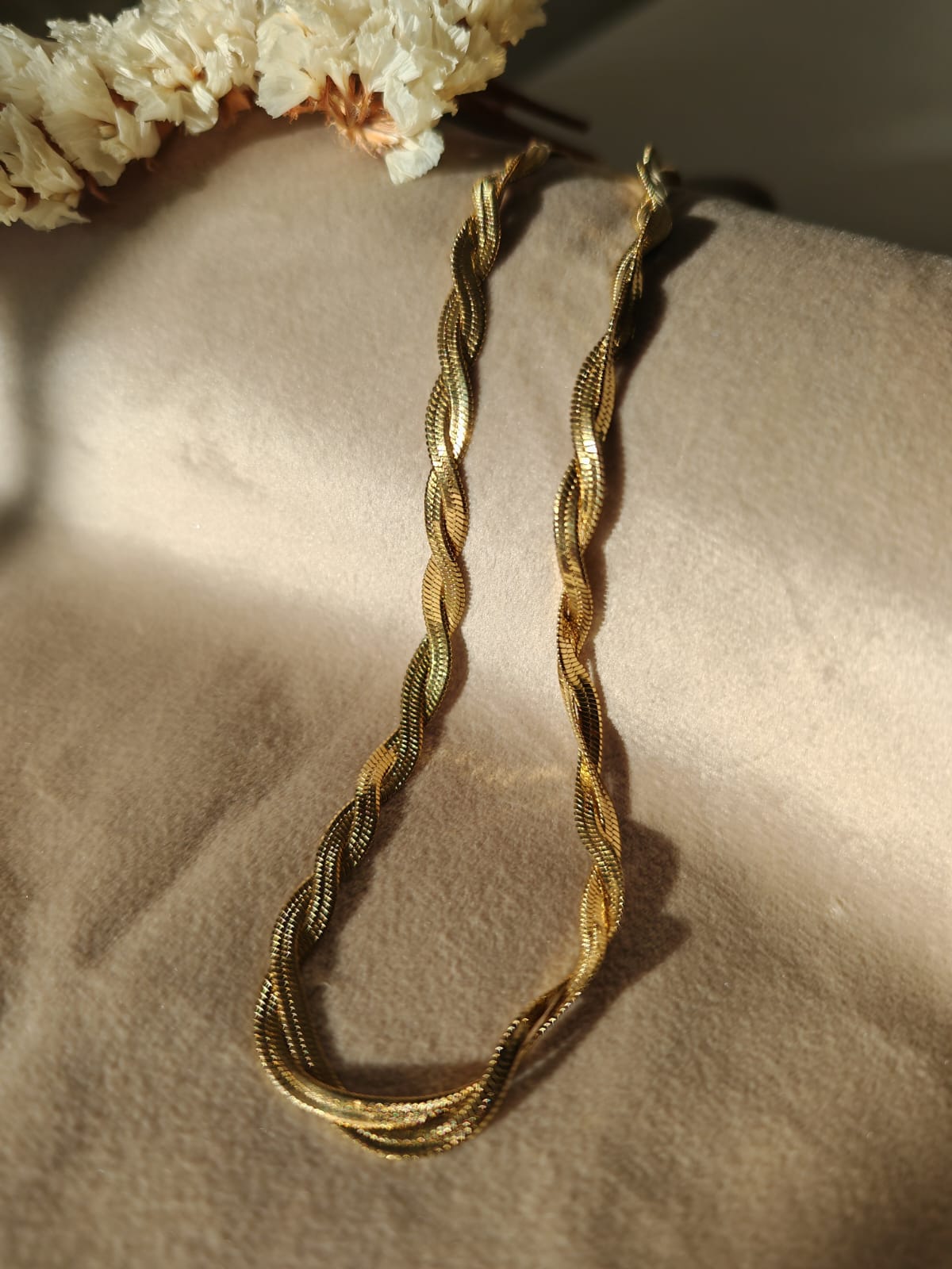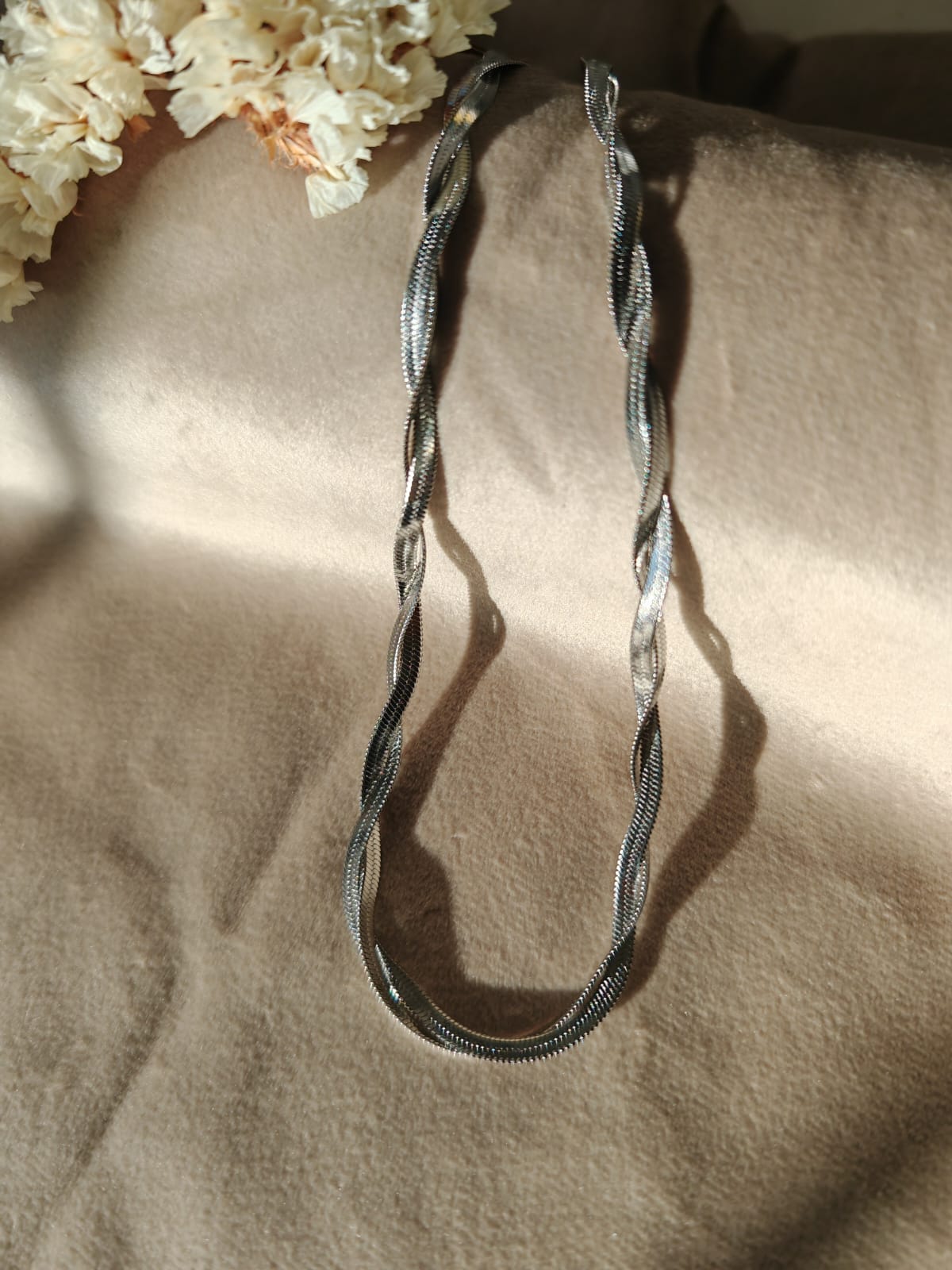 Die Halskette "Charity" ist ein klassisches Schmuckstück, das durch sein gedrehtes Zopfmuster ein besonderer Blickfang ist. Mit seinem zeitlosen und schicken Design ist es ein Must-Have für jeden Anlass.
