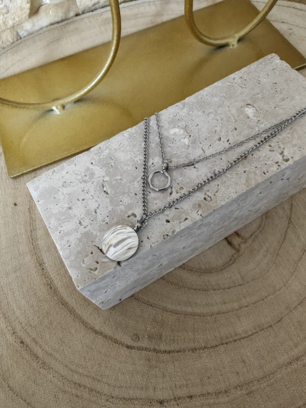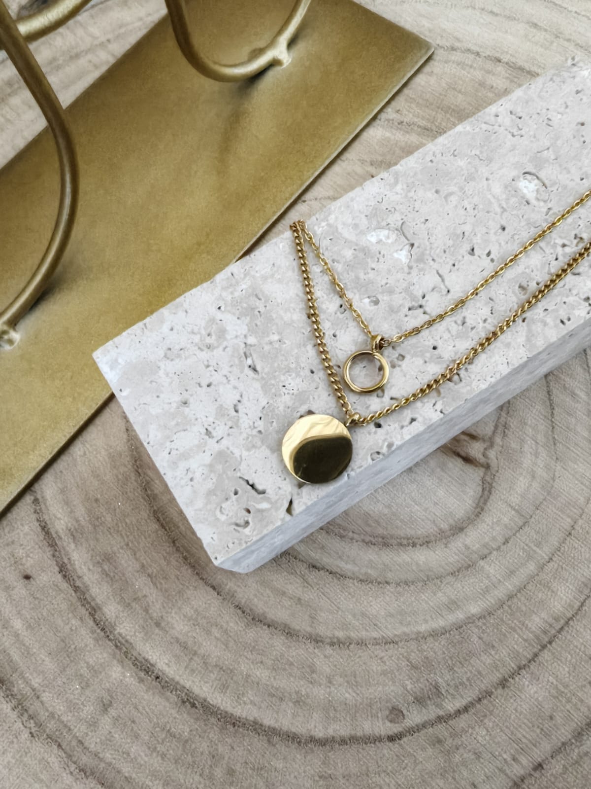 Ergänzen Sie Ihr Outfit mit der simplen und doch eleganten Halskette "Circles". Diese Layerling-Kette besteht aus zwei Ketten mit Kreis-Anhängern und verleiht Ihnen einen zeitlosen Look. Perfekt für jeden Anlass und jedes Outfit.
