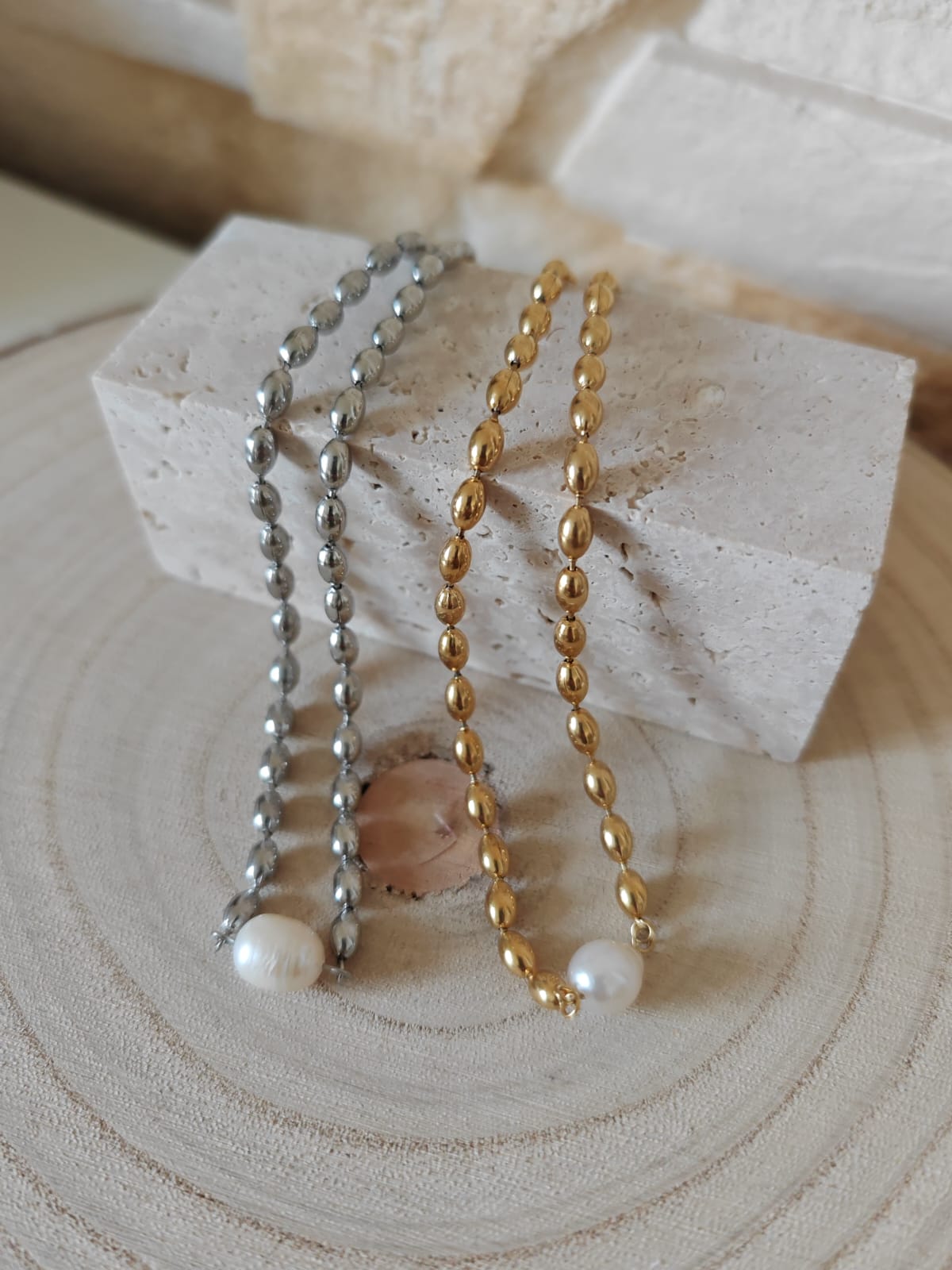 Material: Edelstahl 14k vergoldet / Edelstahl 14k Weißgold / Süßwasserperle