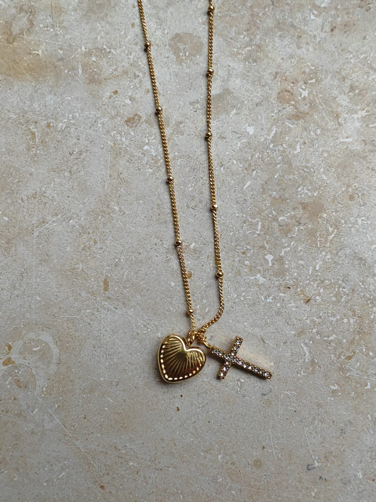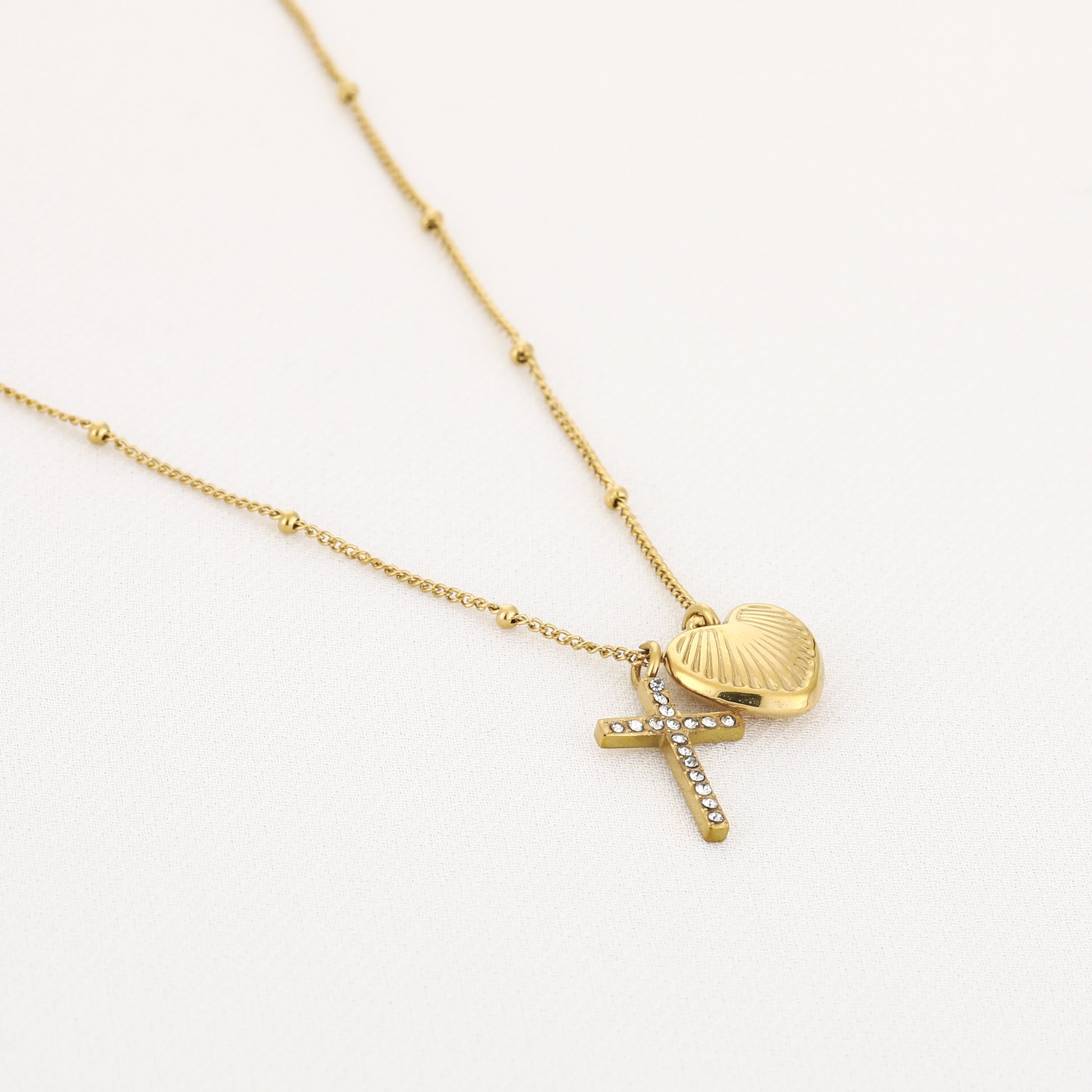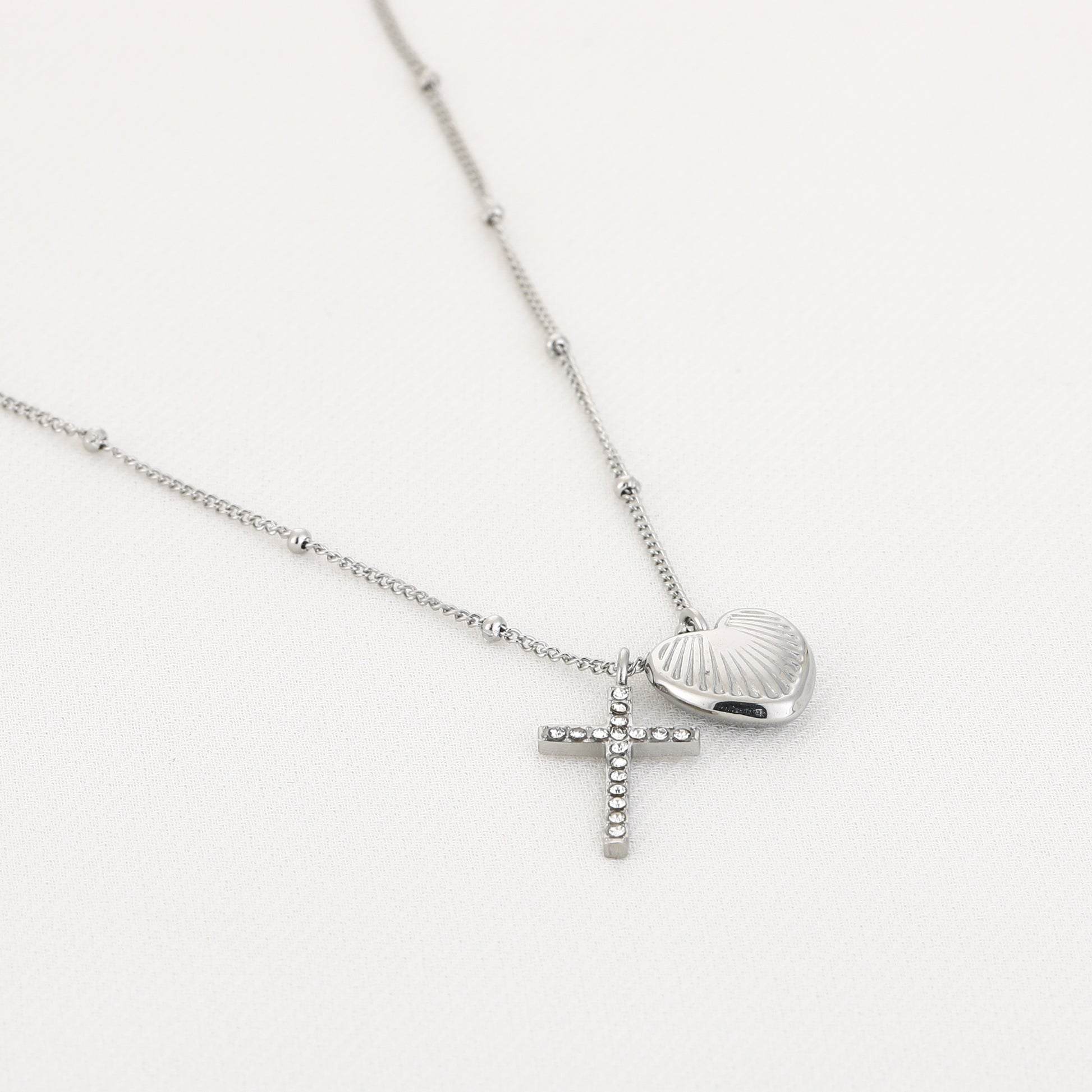 Die Heart&Soul Halskette "Hagar" ist eine wunderschöne Kugelkette mit besonderen Charms, darunter ein kleines Kreuz mit Zirkoniasteinchen und ein kleines Herz. Diese Symbole stehen für die tiefe Verbindung von Liebe und Glaube. Tragen Sie diese Halskette, um Ihre Verbundenheit mit Ihrem Glauben zum Ausdruck zu bringen.