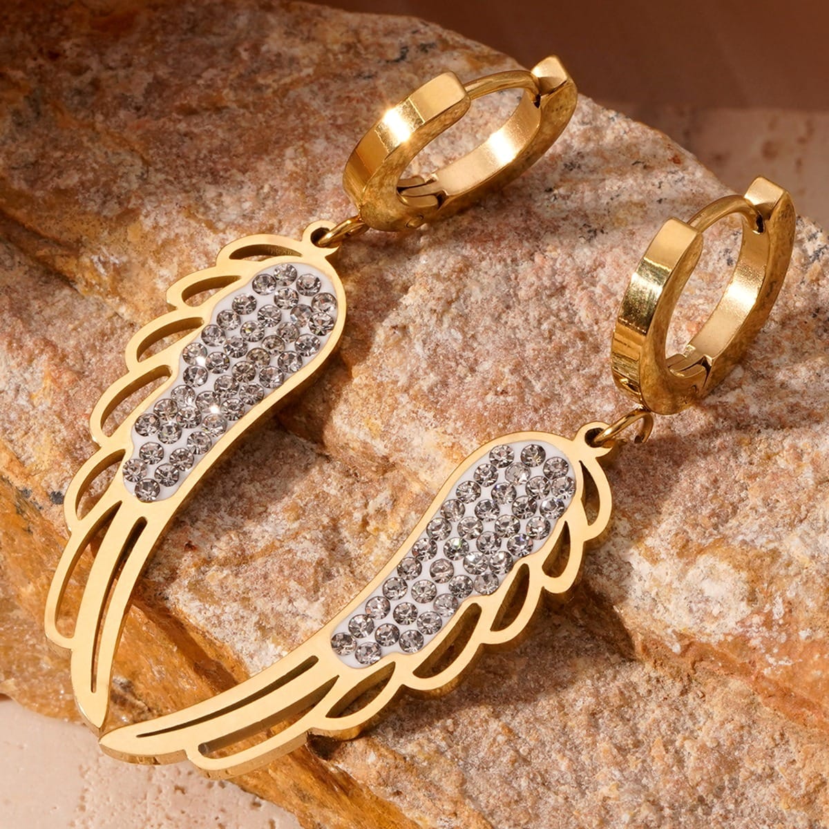 Diese Ohrringe „Engelsflügel“ bestechen durch ihr funkelndes, glitzerndes Design, das jedem Look eine einzigartige Note verleiht. Als elegantes Accessoire sind sie ideal, um Ihrem Outfit Glanz und einen himmlischen Akzent zu verleihen. Die präzise Verarbeitung sorgt für einen edlen Auftritt bei besonderen Anlässen.