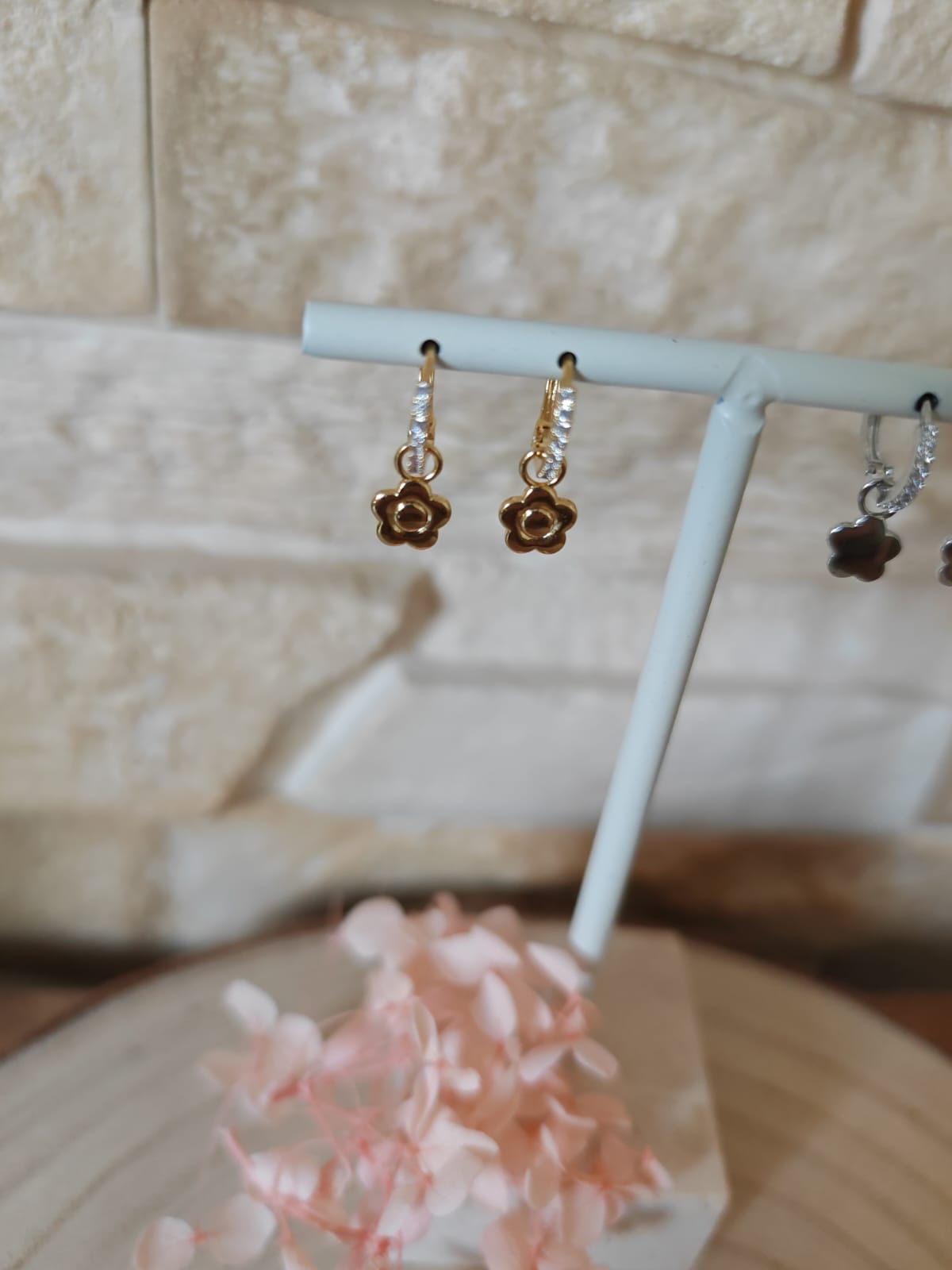 Die Besonderheit dieses Ohrringes ist, dass die Blume einfach angenommen werden kann und es dann einfache kleine Creolen sind. Je nach Lust und Laune!