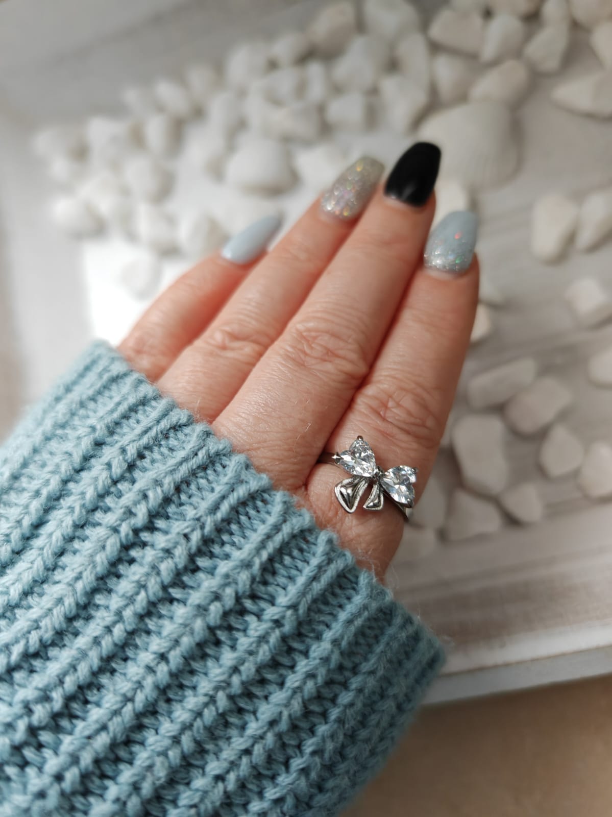 Die Ring "Liat" ist ein vielseitig einsetzbares Accessoire mit einer süßen funkelnden Schleife. Mit ihrer verspielten und klassisch zugleich verzierten Optik verleiht sie jedem Outfit eine besondere Note. Sichern Sie sich jetzt dieses Highlight für Ihr Schmuckkästchen!