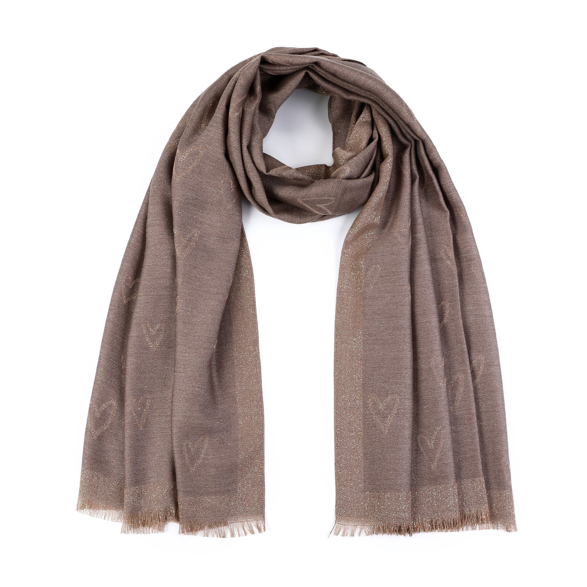 Der Schal „Golden Heart“ besticht durch seine feine, leichte Struktur und die eleganten goldenen Akzente, die dezent Herzen einfangen. Ideal für die Übergangszeit bietet er angenehmen Tragekomfort.